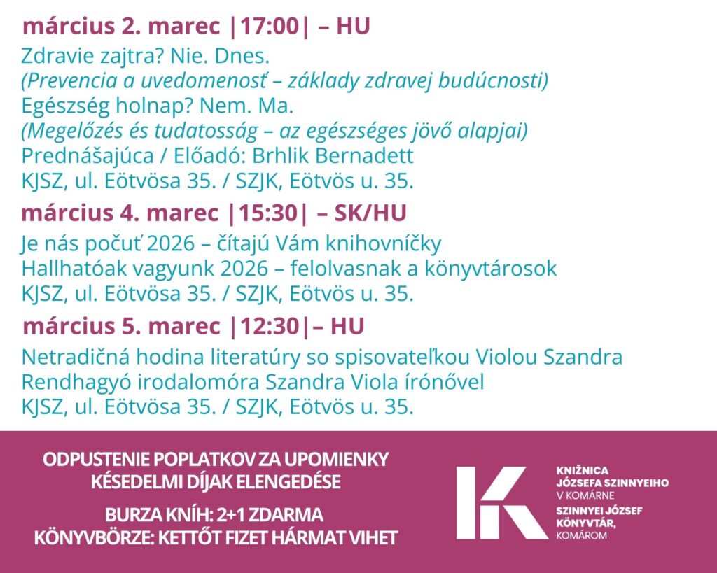 Érdekes rendezvényekkel várjuk Önöket a Szlovákiai Könyvtárak Hete alkalmából.